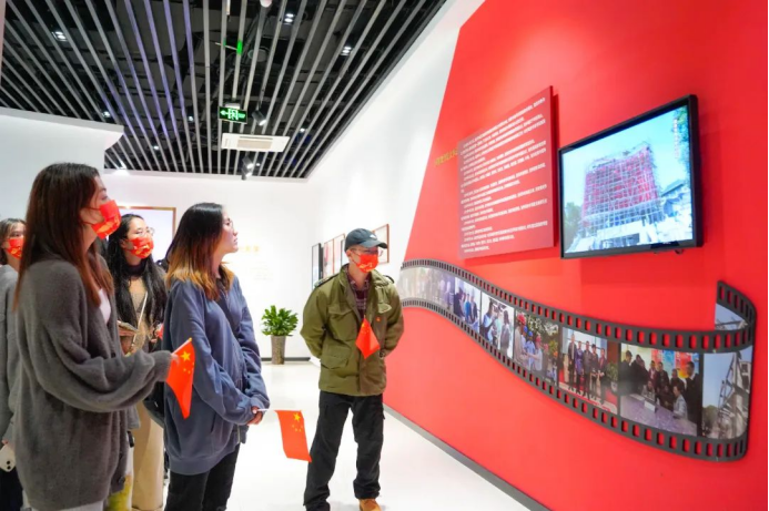 为深入贯彻习近平新时代中国特色社会主义思想,认真贯彻落实党的二十大精神,2022年11月2日下午,黑料网 学生党员来到了全国首家综合性国旗教育馆——瑞安国旗教育馆,开展“赓续红色血脉 奋进时代征程”主题党日活动。党员们在五星红旗前行注目礼,在巨幅屏幕前体验了一次特殊的升旗仪式,在慷慨激昂的国歌声中齐声合唱,在校友曾联松先生的雕像前追忆国旗的设计历史……凝视着鲜艳的五星红旗,更加坚定了党员们奋进的步伐。