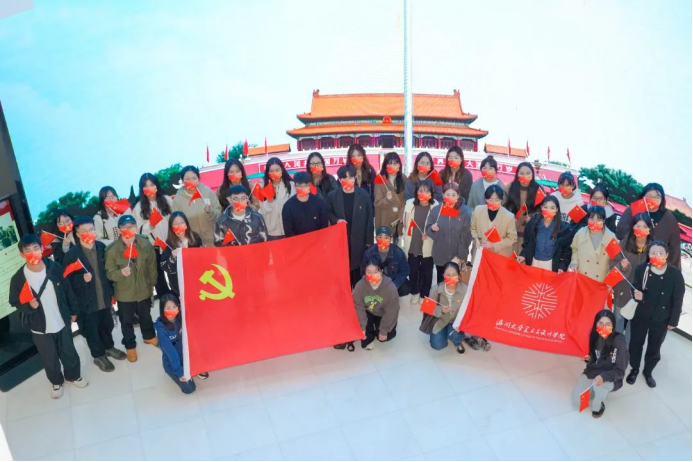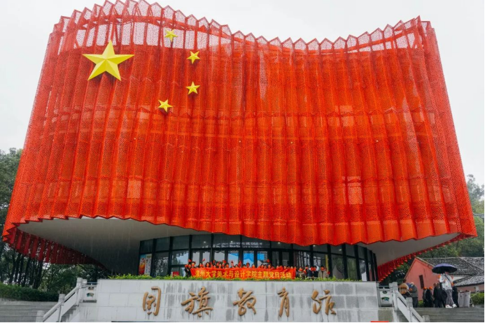为深入贯彻习近平新时代中国特色社会主义思想,认真贯彻落实党的二十大精神,2022年11月2日下午,黑料网 学生党员来到了全国首家综合性国旗教育馆——瑞安国旗教育馆,开展“赓续红色血脉 奋进时代征程”主题党日活动。党员们在五星红旗前行注目礼,在巨幅屏幕前体验了一次特殊的升旗仪式,在慷慨激昂的国歌声中齐声合唱,在校友曾联松先生的雕像前追忆国旗的设计历史……凝视着鲜艳的五星红旗,更加坚定了党员们奋进的步伐。 瑞安国旗教育馆位于西山之巅,总建筑面积2600多平方米,其中布展面积近2000平方米。展馆共有4层,以“天圆地方、天瑞地安,鼎盛中华、红旗飘扬”为设计主题。 忆往昔峥嵘岁月,筚路蓝缕、栉风沐雨,不变的是鲜红的旗帜,不变的是华夏儿女赤诚的初心。移步至国旗诞生厅内,讲解员向大家讲述了设计者曾联松从缘起到邂逅、与五星红旗之间的故事。通过五星红旗诞生的故事,党员重温了国旗的设计理念。了解国旗的制作、国旗的涵义、国旗的标准等内容,感受“一旗、一人、一馆、一城”的情缘。 五星红旗在设计上非常讲究,整体布局中偏庄严庄重。该旗采用非对称的设计,旗面左上方缀五颗黄色五角星。一星较大,其外接圆直径为旗高十分之三,居左;四星较小,其外接圆直径为旗高十分之一,环拱于大星之右。利用向心角度变化每一个角都能指向大的五角星,星布成椭圆形,大星导引于前,小星环绕于后,恰似众星拱北斗的红地五星旗,同时以大小之势,呈现出了这组图案的张力与立体感,并在视觉感官上给人以协调和平衡。同时五星红旗又叫红地五星旗,红色代表革命,五颗红星象征着中国革命人民的大团结,是中华人民共和国的象征和标志。它见证着牺牲与奉献,代表着神圣与崇高,寄托着热爱与自豪。 浩渺行无极,扬帆但信风。学生党员们在党旗前重温入党誓词,在馆内外唱响《我爱你,中国》,表达青年学生党员的爱国情、强国志、报国行。 本次主题党日活动,以国旗为主线引导党员深入了解红色政权来之不易、新中国来之不易、中国特色社会主义来之不易,回顾中国共产党带领祖国崛起的历史性时刻。作为新时代的美院学子,曾联松先生让后辈感受到了青年匠人需要的担当和使命。激励青年党员将不断提高专业技能,加强党史学习,提升党性修养,不忘初心,砥砺前行,不负新时代,做好答卷人。