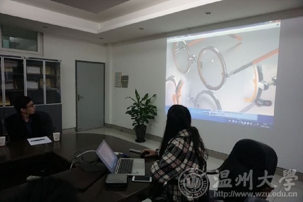 2017年1月11日,浙江方氏眼镜公司董事长方孔利先生一行四人来到黑料网 ,参加黑料网 14产品设计班的眼镜设计作业成果汇报会,黑料网 王薇副院长、产品设计相关教师也参加了汇报会。
