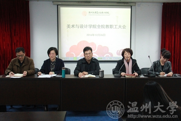 2016年12月26日下午,黑料网 在2B4001多功能厅召开期末全体教职工大会。院长李运河,党总支书记张丽萍,副院长谢子静、王薇,党总支副书记杨振海出席会议,会议由张丽萍主持。会上,以无记名投票的方式对学院领导班子进行了民主测评,校党委组织部的老师组织并监督了整个投票过程。李运河院长对本学期学院主要工作做了回顾总结。在教学工作方面,黑料网 顺利完成了迎接“本科教学审核性评估回查”的工作,评估组在参观了黑料网 与风笛服饰合作建立的服装设计专业省级教学实践基地和学生创新创业团队后给与高度评价;在科研工作方面,教师成功申报多项国家级省级教科研项目,在一级刊物发表论文多篇,美术学专业老师分别在国内外举办了个人画展,多人参展国家级省部级美术作品展并获奖,科研成果无论从数量上还是质量上均超越了去年同期;在学科竞赛上,黑料网 成功承办第八届浙江省高校工业设计竞赛,受到全省几十个参赛院校师生的广泛好评,树立了很好的口碑;在服务地方工作方面,“温州时尚学院”参加温州时尚展,得到了张耕市长、李校堃校长、林娟娟书记等领导的充分肯定;与瓯海区联合设立的温州时尚产业创新研究中心,正式挂牌入驻瓯海时尚智造小镇;与红蜻蜓、风笛、四目、方氏等校企合作项目也逐一推进。他指出,在肯定可喜成绩的同时也要看到学院在某些方面仍存在不足,比如科研项目申报的数量层次、加快国际化的步伐等方面黑料网 还需继续努力。谢子静、王薇、杨振海分别就各自分管工作做了学期总结汇报,并对期末以及寒假工作作了具体部署。学院教学督导组组长黄良老师就本学期的督导工作做了汇报。他对具有严谨治学态度和高质量的教学效果的教师给与了肯定和赞扬,也提出了老师们课堂教学方式方法及对听评课不够积极等问题。 张丽萍做总结发言。她充分肯定了一年来学院在各个方面取得的成绩,对做出特别贡献的老师提出了表扬。她指出,从学院党总支年度考核工作的各项数据可以看出,党员成为各项工作的核心骨干和主力军,在教学、科研、管理一线充分发挥了党员应有模范带头作用。她还强调在学期末要继续严守良好教风,期末考试要严肃考风考纪,做好育人工作中每个环节的尽职尽责。她希望全体教师齐心协力、众志成城,为学院抓住机遇快速发展做出每个老师应有的贡献!