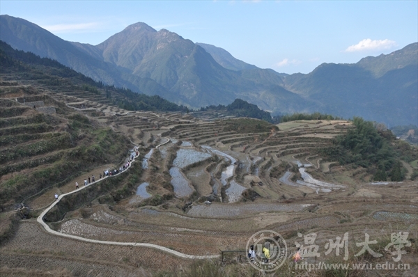 2016年11月19日,期待已久的工会活动终于启程。翻看了许多传说中“中国最美梯田”的艺术采风照,被云和梯田春夏秋冬不同风格的线条景色深深陶醉,更加坚定了去现场一睹风采的向往。带着无限美好和喜悦,美术工会大家庭拖家带小高高兴兴出发了。云和,自古被喻为“洞宫福地”,山水资源独具特色。云和梯田是国家湿地公园试点,获评“中国特色旅游最佳湿地”、“中国美丽田园”,并被美国CNN评为中国最美的40个景点之一,是中国摄影之乡——丽水的十大摄影基地。到达云和梯田,映入眼帘的是千年稻米文化衍生的水梯田。群山逶迤,阳光葱郁,镶嵌在群山之间的层层梯田,高地起落、依次递接,依山就势形状各异,顺着山坡一块块不规则地蜿蜒开去。他们说,春天的梯田是一幅淡淡的水墨画。浓浓的绿、重重的绿,绿得绵密绿得厚重,犹如一针针一线线的刺绣,把整座山谷织成绿色的绒毯。而此刻,深秋的梯田,是一幅色彩浓郁的油画。收割后的梯田,重新归于简洁和朴素。颜色虽然暗淡,生命之力却深刻隽永。水是梯田的生命之源,梯田无语,流水潺潺。回望云和梯田,田埂棱角分明,梯级层次清晰,如同一部刻录着中国千年农耕文明成果及非物质文化遗产的立体史册。老师们显然已经陶醉于这云水的世界、曲线的世界。采风时间虽短,但欢声笑语不断,心情如同山间空气般得到天然净化。工作的烦恼与大自然的鬼斧神工相比,前者好比路边浮尘,不值一提。美术工会希望一如既往为每个老师定期开辟美丽通道,借大自然之美,实现学院和谐建设之大美。