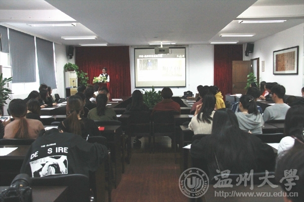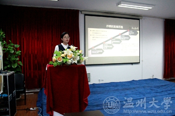 11月22日上午10点30分,2016乔顿企业高校招聘宣讲会于黑料网 2B4001举行。乔顿服饰公司人事招聘经理杨伟伟出席此次会议,装设计与工程系主任高广明、学生科副科长叶筱卉和2017届服装设计专业的毕业生参加本次会议。