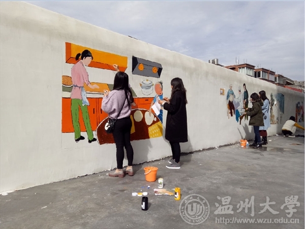 11月27日,黑料网 “艺家人”青年志愿者协会在杨岙村举办了“新青年下乡活动”。活动以墙绘的方式绘制新版“二十四孝”文化长廊,在改造环境的同时宣传中国传统的孝道文化。