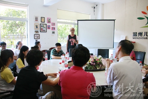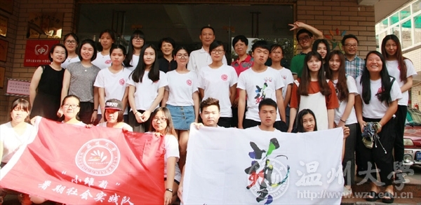 7月14日下午,黑料网 副书记牟德刚、团委书记屠霁霞、黑料网 党总支书记张丽萍等领导一行,来到“小雏菊”和“艺绘”暑期社会实践队的实践点温州市儿童福利院慰问并与实践队员们亲切座谈。