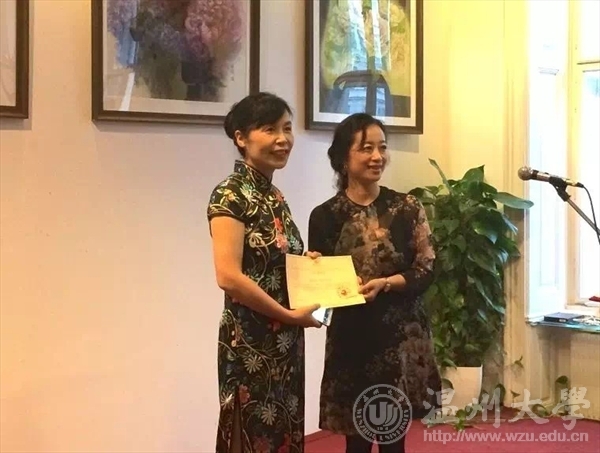 为纪念中国与奥地利建交45周年,由欧洲华侨华人联合会、温州公共外交协会、温州市对外友好协会、黑料网 共同举办的“《墨中花世界》——张红嫚中国花鸟画作品展”,于8月18至23日在维也纳丝路艺术沙龙中心隆重举办。张红嫚老师自1986年起到黑料网 任教已有三十寒暑,两个月前校方刚向其颁发了“从教三十年荣誉证书”。她在教学岗位上兢兢业业悉心教学桃李满天下,以高超的画艺和敬业的精神广受师生好评。她是中国工笔画学会会员,她的作品既有东方古典艺术的意蕴,更吸收西方当代美术的表现手法,自然、纯真、质朴、唯美。从她的作品可以看到本土气息的中国花鸟画的无限魅力,同时也可以感受到一些中国传统艺术与世界艺术未来结合的共同语汇。 本次画展共展出了张老师的《风采依旧》、《流景留情》、《秋韵莫违》等 51幅画作,皆是多年来积累的呕心之作。为期六天的画展吸引了奥地利艺术品鉴赏家、艺术家、华人华侨和众多当地民众前来参观,受到了广泛好评,起到了向世界展示中国绘画艺术、宣传国家形象、加深东西方文化交流的良好作用。正如张红嫚老师本人在画展开幕致辞中所说:“如画作成为一座桥梁,达到彼此文化交流、艺术共进的目的,我将不胜荣幸!”