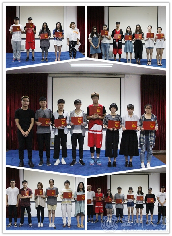 首先本次典礼主持人学生会组织部干事张彬瑶致开场辞。全体与会人员起立奏唱团歌后,组织部部长张弘扬宣读本学期团干培训结业人员名单和优秀学员名单。主席团成员和老师分别为成功结业的学员颁发结业证书和部分“优秀学员”荣誉证书,并合影留念。这是对干事们工作能力的肯定。每次培训都是经验的积累,干事们不断学习丰富充实自己,逐渐成熟,羽翼开始有了雏形。