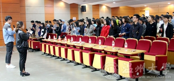 “做个高在学识、富在实践、帅在处事的‘高富帅’吧!做个白在品性、富在思维、美在心灵的‘白富美’吧!”在学院大学生文明修身系列活动启动仪式上,学院党总支书记张丽萍向全院学生发出倡议。4月20日,黑料网 在雁山厅举行大学生文明修身系列活动启动仪式。校学工部部长、学生处处长蔡联群,团委书记屠霁霞,教务处副处长赵燕,创业人才培养学院副院长施永川,学院党政领导班子成员,200多名学生参与了本次启动仪式。院党总支副书记杨振海主持启动仪式。