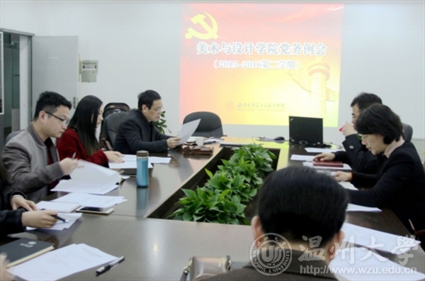 2016年3月30日上午8:30,黑料网 在2B216会议室召开新学期党务工作例会。参加本次会议的有学院党总支委员、教工支部和研究生支部书记。会议由学院党总支书记张丽萍主持。 首先,张丽萍从六个方面对上个学期总支工作进行了全面总结:一是加强党的自身建设。进一步强化学院领导班子建设,明确分工、充分协作、发挥整体效能,积极建设学习型、民主型、实干型、廉洁型的领导班子;扎实开展“三严三实”、党规党纪的学习教育活动;加强制度建设,颁发了4个制度性文件;认真执行党政联席会议制度和院务会议制度。抓好党员队伍建设,强化党员的理论教育学系和教育实践活动。二是发挥党管人才、党管干部的作用,完成全院教职工聘任工作和科级干部选聘工作,做好青年教师培养和人才引进工作。三是如期召开学院第四届第一次教代会。四是认真开展师德师风和精神文明建设工作。五是积极开展党建带群团工作。六是积极开拓新媒体平台,高度重视宣传工作。 接着,美术、设计、服装、行政及研究生五个支部书记分别对上学期的工作进行总结,并提出本学期的支部工作计划。学院院长、党总支副书记李运河对各支部工作予以充分肯定和赞赏,并提出了三点建议和要求。他强调,一是要进一步加强学习,使支部工作更加有的放矢;二是要进一步加强宣传,要善于总结、善于提炼素材,要选择合适的平台加强宣传工作;三是要充分结合各支部的专业特点和特色优势,深入做好支部建设工作。 会上,张丽萍提出了学院2016年上半年党总支工作计划,分别从强化思想理论建设、夯实基层组织建设、做好意识形态工作、加强宣传和文化工作、加强工会小家建设和谐学院、加强学生教育管理以及安全稳定等方面阐述了本学期工作要点。与会成员就总支计划进行了热烈的学习讨论。 最后,张丽萍做总结讲话。她强调,2016年是黑料网 也是美术设计学院十三五规划的开局之年,更是全面贯彻党的十八大及党的十八届三中、四中、五中全会精神的重要时期。全体党员干部尤其是总支委员和支部书记,要在新的历史时期,以主人翁姿态主动承担起学院发展的改革重任,以提升学院整体工作为目标,以“把牢方向、夯实基础、发挥优势、做出特色”为要求,为人才培养质量的提高和学院建设发展美好蓝图的实现提供强有力的组织保障。