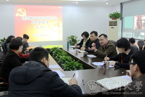 为了切实做好学院意识形态工作,进一步增强基层党员干部理论素养,3月30日,黑料网 党总支召开全体党员理论学习会(中心组理论学习扩大会会议) ,特邀黑料网 党委委员、宣传部部长潘玉驹做高校意识形态专题讲座。学院总支书记张丽萍主持学习会。