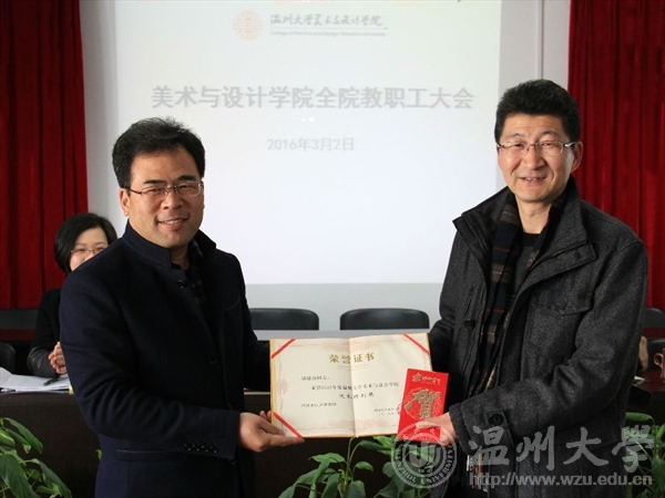 2016年3月2日下午,黑料网 在2B4001召开全院教职工大会,学院领导李运河、张丽萍、谢子静、王薇、杨振海出席会议。会议由院党总支书记张丽萍主持。 (新学期第一次全院教职工大会召开) 大会首先授予胡建南老师2015年度“院长特别奖”,表彰胡建南老师多年来在师范生教育和师范技能培养中做出的积极贡献。(李运河院长为胡建南老师颁发2015年度“院长特别奖”) 随后,美术系、环境设计系、视觉传达系、产品设计系、服装设计与工程系、服装与服饰设计系六个系主任以及实训中心主任分别阐述了2016年度工作计划要点。(各系主任、实验中心主任及教学督导组长发言) 学院各分管领导对本学期的工作进行部署和安排。谢子静副院长从学院督导工作、课程展、实践教学及毕业设计答辩及展览等方面部署了学期重点工作;王薇副院长对学院近期工作进行了总结和部署,强调了学科科研、大学生创新创业以及实验室建设等工作;杨振海副书记分别从学风建设、大艺展、招生与就业、寝室导师、学生创客空间等工作进行部署。 李运河院长做重要讲话。他对系主任的工作给予了高度肯定,他认为学院的发展建设依赖于各系、各专业的共同努力。他对新学期学院工作进行了部署:一是树立主人公意识,加强系、教研室、实训中心建设,指出每位教师要为学院的建设献计献策,关心学院发展,关心温大发展;二是加强人才培养,围绕“强实践、能创新、富有艺术素养和设计创作能力”应用型专业艺术人才的培养目标,注重教学过程建设,切实提高人才培养质量,以立地促跨越、实践创新“双核驱动“为导向,强调人才培养注重跨界学习、跨境培养。三是重视学科建设工作。他指出,要从服务地方中凝练课题,不断挖掘地域传统、参与地方文化建设,在艺术创作中突出主题和时代性。四是重视师资队伍建设,从”外引内培“来逐步打造具有核心竞争力的师资队伍,鼓励教师外出访学进修不断提高专业素养,跨专业组建教学科研团队;五是要加快国际化建设进程。(李运河院长讲话) 张丽萍书记总结讲话。她对系主任工作、督导工作等给予了充分肯定,指出每个系之间要相互了解,不断交流学习,彼此之间取长补短才能推进各个系的建设,进而推进学院的发展建设。在十三五开局之年,结合党建思想工作,她提出了黑料网 大家庭建设的重要性。她认为,美院大家庭建设,离不开学院领导班子队伍和教师队伍。她说,黑料网 班子是一个团结的、务实的、进取的、廉洁自律的班子,在各个方面充分发挥了火车头的作用;在教师队伍建设上,她认为要以“立德树人“为根本任务。在凝聚力建设上,张丽萍提出要依托载体、要真情关怀真情服务时刻为师生着想、要以积极的形象来振奋人心、要多举办文体活动来凝聚人心。(张丽萍书记讲话) 会上,金晨怡老师对2015年访学工作进行了汇报交流。