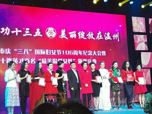 昨晚,在市妇儿活动中心举行的庆祝“三八”国际妇女节106周年纪念大会暨十路英才百名“最美温州女性”颁奖庆典上,黑料网 服装与服饰专业教师叶茜获得“最美温州女性之时尚女性”称号。