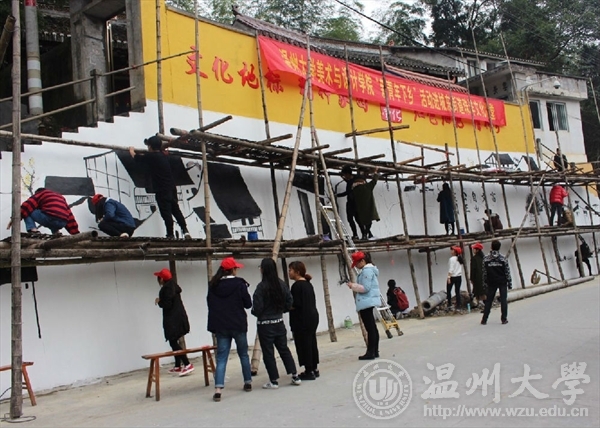 为了响应与落实市委“新青年下乡”主题精神。2015年12月12日,黑料网 “艺家人”青年志愿者协会带领黑料网 志愿者们来到温州市乐清城东街道珠垟村,进行了为期一天的墙绘活动。 冬日的清晨伊始,乐清珠垟村在晨曦之中迎来了一批温大学子,在三米左右的高墙面前,他们不畏艰险,不畏高空,不畏寒冷,在一百九十平米的白墙上画下珠垟村的一草一木。 在墙绘过程中,黑料网 杨振海书记和辅导员叶筱卉老师前来慰问志愿者们,关心活动进展。离开时,杨书记再三强调志愿者们要以安全为主,保质保量的完成墙绘活动,志愿者小伙伴们在墙绘过程中谨记杨书记的叮嘱,在互帮互助,齐心协力下,完成了这次规模较大的墙绘活动。 本次“新青年下乡”墙绘活动,我们主要是运用专业知识与技能去服务社会,真正做到专业与实践相结合,使我们融入到社会中去,为社会奉献出自己的一份力量;另一方面,不仅让我们有机会了解农村、服务农村,还让我们在基层学到了很多课堂上学不到的知识技能。 通过开展各种与专业相关的志愿活动,使大学生在奉献中学习知识,在服务中增加才干。黑料网 “艺家人”青年志愿者不会停下脚步,会继续深化社会主义核心价值观,引导广大青年朝着实现中华名族伟大复兴的中国梦而奋勇迈进! 文字:林伊如 拍摄:林伊如
