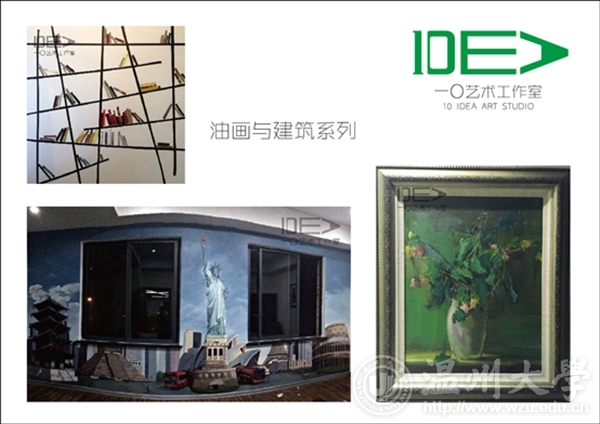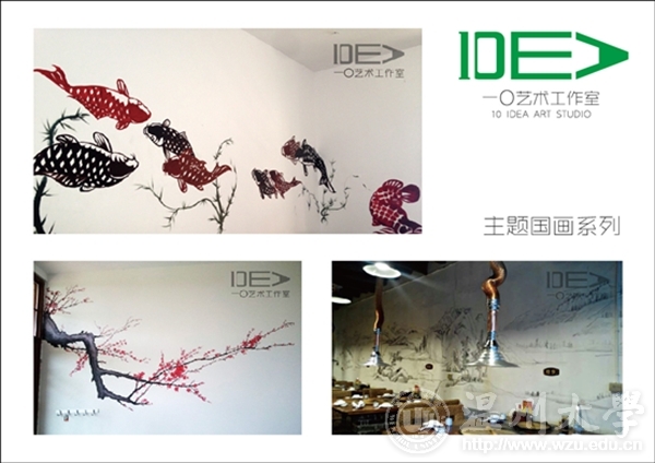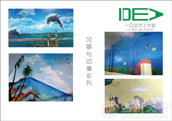 团队名称:一〇艺术工作室 负责人:吕舒宁 联系电话:18367810822 工作室简介 “一〇”艺术工作室成立于2013年,由黑料网 油画、国画以及环艺专业的几位热血青年组成。以墙绘艺术创作,定做油画、国画为核心。秉承“一”是最简单的开始,“〇”是无限大的创意。我们只为用色彩点亮客户的艺术生活,为此我们以初心——永不止步。 工作室成员 吕舒宁、蒋成杰、郭龙、朱雄辉、陈情、林瑞恬、黄磊、顾天成、陈伟伟 经营业务范围 1.油画国画风景、人物类定做 2.室内室外墙体艺术彩绘 3.绘画作品临摹临摹(包括油画、国画、书法等) 4.平面设计 作品展示 创业感想 我们是大学生中的沧海一粟,我们曾彷徨,为不定的未来着急。绘画从来都是高贵的玩具,年轻的我们还拿不起。某个契机,看到了专业的缩影——墙绘。我们是专业的画手,我们有最新颖的想法,我们愿用热血呈现精彩的视觉享受。 细看生活不难发现随着经济的发展,人们开始追求上层建筑的享受,而绘画艺术必将广泛的进入我们的生活,已经成为一种生活的方式。我们知道翅膀硬的老鹰才能飞的更高,所以我们将明确目标,实事求是,执着追求,最终可以让所有人的生活变得更加美好。