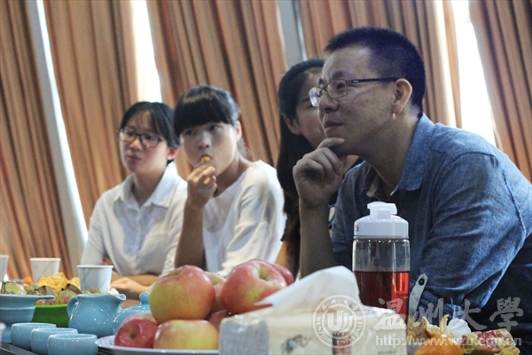 2015年9月24日下午1时在黑料网 的视野空间交流室内,艺路导航第六期师生交流会如期举行,本期特邀黑料网 黄容海老师。 人生如茶。一苦,二涩,三而甜。沐浴着茶叶所散发出的醇香,在一片氤氲中大家便开始了热络的畅谈。黄容海老师亲切的问候,诙谐的语言,带来这场无拘束的近距离座谈会。 活动开始黄容海老师首先询问了同学们生活和学习方面现状的了解,当聊到近期作业过多这个问题时,学生们都愁眉苦脸,黄容海老师首先提到了“主动学习”,黄老师说“作业虽然数量多,然而质量和态度才是更为重要的,我们应该要学会转换性思维,只要你积极主动去做,认真用心去体会,必然会感受作业带给你的收获。”并强调到时间规划的重要性,推荐大家每天给自己一个规定的时间来完成作业,花多少时间做事是由自己决定的,不要逼着自己熬通宵,同时,并举了一个例子,一个员工熬夜加班在半夜两点给老板发文件,第二天却换来老板一顿臭骂。说明认真并不是你的通行证,还需要效率和规划。老师的话如一记警钟敲响了在场的同学们。之后针对专业的问题,一场简单的交流似乎以无法满足大家的疑问,同学便直接回教室搬出了展示模型,一场直观实践的现场教学和专业指导便开始了,黄老师对同学进行了耐心的解答,在座的同学们都受益匪浅。如山涧的流水娓娓道来,意味深涵,又像是大海里的指向标引领者同学们走向更美好的明天。 时间就是如此,你不曾觉得拥有却悄然离去,不知不觉已到了尾声,收获了信心,收获了温暖。在一片欢声笑语中,座谈会也到达了尾声。同学们在这轻松愉快的氛围中恋恋不舍地离去。短短几杯茶的时间,每位同学的心仿佛被黄老师的温声细语擦去了所有尘埃,愈发干净透明,也如同被清茶洗涤,找到并确立了自己的方向。此次座谈会就圆满结束了,相信黄老的劝导和鼓励,能使同学们以积极的态度展望未来。 摄影:黄磊 通讯:周瑶