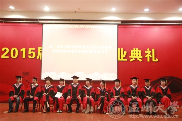 6月17日下午,黑料网 在岩松堂雁山厅隆重举行2015届本科生毕业典礼暨学位授予仪式。出席典礼仪式的领导有:黑料网 校长蔡袁强、黑料网 院长李运河、党总支书记张丽萍、副院长谢子静、副院长王薇、办公室主任李丽、学生科科长叶如芳,美术系主任陈伟、设计系主任朱广宇、服装系主任陈明艳、教授舒湘鄂、教授魏静、教授邓国祥、教授李勋祥、教授蔡瑞蓉、博士张晓剑。此外,全体毕业班班主任、教师代表、全体毕业班同学参加了本次典礼。学院党总支副书记杨振海主持典礼。 首先,进入第一篇章《只如初见 恍如昨日》,主要有电子相册的播放、微电影《献给毕业的你》、以及诗歌朗诵《今天,我们毕业了》等内容。追忆四年,一幕幕场景、一段段音符,串连成一部画面与音乐交织的大学电影,播放着曾经的快乐与忧伤,记录着同学们曾经的青春与过往,也见证着拥有的友谊与深情! 随即进入第二篇章《青葱年代 凤凰花开》部分,学院副院长谢子静宣读了校优和院优毕业作品获得者名单,学院党总支书记张丽萍宣读了省优和校优毕业生获得者名单,院长李运河、书记张丽萍、美术系主任陈伟、设计系主任朱广宇、服装系主任陈明艳、教授舒湘鄂、教授魏静、教授邓国祥、教授李勋祥、教授蔡瑞蓉、博士张晓剑一一为他们颁奖、合影留念以资鼓励。 紧接着典礼进入第三篇章《亦师亦友 常忆相思》部分,学院为全体毕业生赠送纪念品——由美院学生原未手工皮具工作室制作的卡包。 为了更好的与毕业生保持联系,学院特意设立了各班级的校友联络员,学院副院长王薇宣读了名单,院长李运河、书记张丽萍为每位校友联络员颁发聘书。 接着,由省优毕业生11美本师范班马俪净代表2015届毕业生发言,她回忆了在温大的学习与生活经历,并表达了毕业生们即将离开的不舍和即将高飞的壮志。精彩的发言引起了在场毕业生们的共鸣,赢得了阵阵的掌声。 至此进入第四篇章《寄语明天情深道远》,院长李运河为2015届全体毕业生致辞!他祝愿大家以正确的世界观、人生观、价值观来指导自己的选择。志存高远,增长知识,锤炼意志,让青春在时代进步中焕发出绚丽的光彩,未来的自己,一定会感激现在努力的自己。 接着在校的学弟学妹代表为全体毕业生献唱《温大青年之歌》。 最后,典礼进入高潮部分,由黑料网 校长蔡袁强为每位毕业生一一拨穗、颁发学位证书,并合影留念。这隆重的毕业典礼将成为每位学子心中最美好的回忆。祝福毕业生同学们明天更加辉煌灿烂!前程似锦!