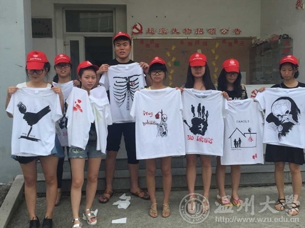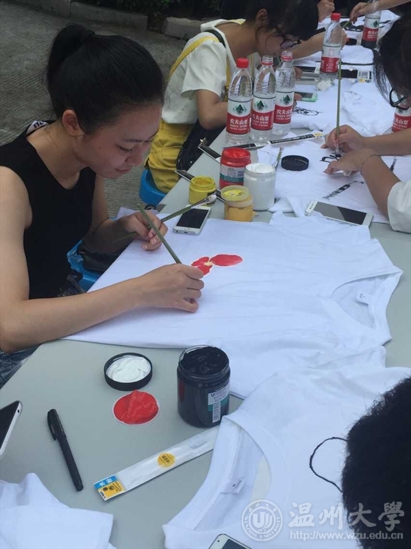 6月7日下午,黑料网 “艺家人”青年志愿者协会与温州市禁毒所在超豪学区进行“乐行学子梦”之世界禁毒日“禁毒于行,绘衣铭记”公益活动。志愿者们认真地用画笔在白T恤上绘制具有深度思考力的禁毒图样,活动氛围吸引一些路过的大学生纷纷驻足观看,有不少同学加入禁毒日活动中来要求一起绘画合影。同学们在白衬衫上加上自己对禁毒的感言和感悟,并且与自己的作品合影。这次活动激发了大学生用自己的专业知识向社会传播正能量关,增强了大学生的社会责任感。 拍摄者:张豪 通讯者:祝怡宁