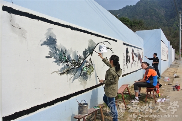 3月22日,黑料网 “艺家人”青年志愿者协会在瓯海区潘桥街道东边村完成了上百米的“美化街道”主题墙绘。此次墙绘规模宏大,尽管当日天气炎热,工作量繁重,但志愿者们相互协作分成五个组进行,干劲十足。活动开始片刻,单调的墙面就在志愿者的巧手上勃勃生气。高洁的兰,傲雪欺霜的梅,静谧的荷塘还有气势恢宏的奔腾万马,一幅幅美轮美奂的画作在原本洁白的墙面活灵活现,让人目不暇接。 志愿者通过墙绘号召大家保护环境从身边做起,美化街道从我做起,此次活动受到村长和村民们的一致好评。 通讯、拍摄:刘子彰
