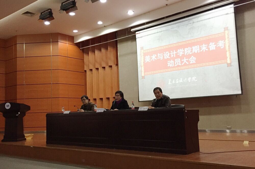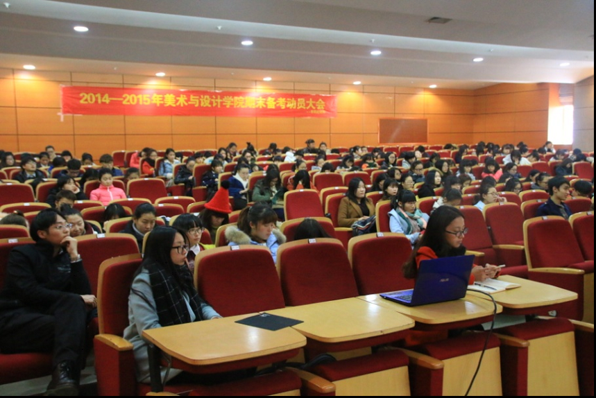 为了激励学生主动复习,自信迎考,诚信应考,营造良好考风学风。1月7日下午,黑料网 在南校雁山厅举行了2014-2015学年第一学期期末备考动员大会。出席此次会议的有学院党总支书记郑彩莲、副院长蔡可群和副书记杨振海,以及全体大一新生与老生代表。杨振海副书记主持会议。首先,蔡可群副院长围绕学院“学风建设年”的实施背景,结合艺术专业的学习特点,从学习态度、学习方式与学习方法等角度阐述了学风建设在人才培养过程中的重要性,并强调考风是学风建设的集中体现,也是彰显公平竞争的具体体现。随后,郑彩莲书记针对期末备考与诚信考风做了严爱相济、语重心长的指导讲话。她指出,诚信作为新时期社会主义核心价值观的重要内容,是衡量个人品行优劣的道德标准之一。她结合具体案例从考风形势预判、考风违纪预案处置、考风信息及时传递、诚信考风人品考量等方面强调了“诚信考试是硬道理”的理念。她强调党支部、团委、班委要做好诚信考风的宣传工作,更要发挥模范带头作用,以良好的考风促学风。她希望同学们能够自觉遵守考场纪律,让考场成为一片公平角逐、展现实力的净土。她更希望能够看到一个大家都你追我赶,求知若渴的美院,而每一个置身其中的人都能感到欣慰和自豪。最后,杨振海副书记勉励同学们在期末考试中,不仅要交出专业知识的水平之卷,更要交出诚信的品行之卷。