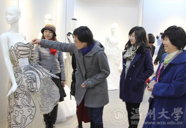 2015年1月12日下午,黑料网 院长李运河、副院长蔡可群、党委书记郑彩莲、副书记杨振海、院办公室主任李丽、服装系主任陈明艳等一行人,莅临“衣彩纷呈”课程联展现场参观指导,为此次课程联展拉开了序幕。 《礼服设计与立体造型》《服装面料再造》课程联展,以“衣彩纷呈”的主题,以“培养学生创新创意思维,提高综合应用所学的专业知识,激发学生学习活力”为宗旨。通过礼服、创意装、面料二次创意等设计作品的汇报展出,强化学生的实际动手能力,反应课程改革的成果,并给学生提供了自我展示的平台和互相交流学习的机会。本次展览由11级艺术服装2班24名同学的作品组成。参展的礼服习作共计20件(套),创意装设计24件;面料二次创意设计46件。礼服设计突出艺术手法运用与效果表达,注重品质与流行元素的运用,同时注重搭配与材料的创意创新,强调手工制品的艺术表现手法和多元融合化;面料再造设计以原始面料为出发点,以激发学生无止尽的想象与创造能力为培养目的,强调面料二次设计手法与面料材质的适应性,旨在创作出与时尚接轨并引领潮流的面料创意产品。这些作品反应了学生学习与劳动的成果,也是魏静、陈莹、叶婷三位指导教师细心指导的结晶。