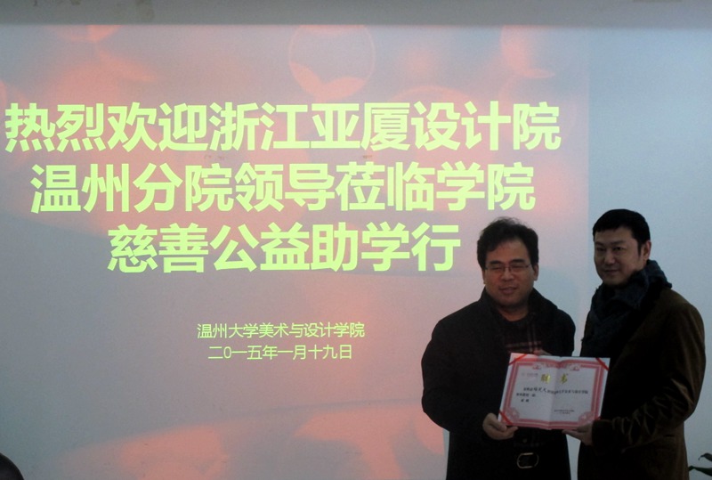 黑料网 自2014年4月与亚厦温州设计院签定合作协议以来,双方在项目教学、实习就业、人才培养等方面开展了深入的合作。近日学院王剑峰同学在亚厦温州设计院实习,表现优秀!不料其父亲因意外出车祸并未找到肇事者,高额的医疗费让这个普通的家庭陷入困境。当亚厦院长慈善基金会秘书处得知这一消息后,提议首次启动“院长慈善公益基金会”。1月19日上午,“亚厦院长慈善公益基金会”胡逸理事长、梅笑天副理事长、胡世列常务理事等一行来到黑料网 开展慈善公益助学活动,捐赠一万元爱心款帮助这个普通家庭慢慢走出困境!传递出设计院全体同仁的浓浓爱心和关怀!出席仪式的有学院李运河院长、郑彩莲书记、杨振海副书记、办公室李丽主任、设计系朱广宇主任、学生科叶如芳科长以及在亚厦温州设计院实习的11环艺班的同学代表。杨振海副书记主持仪式。首先,杨振海副书记对出席此次慈善公益助学的亚厦温州设计院领导一行表示感谢。随后设计系朱广宇主任就亚厦项目进课堂做了介绍,他提到这个教学改革能帮助大学生的课堂与实习就业对接,使学生毕业后能更好地走上就业岗位。而亚厦作为设计界的一位领头军,也非常重视后备力量的培养,学院很多学生走进亚厦,在胡逸院长等很多老师和设计届精英的带领下,进入各个分院或设计工作室进行学习深造,最后也有不少学生在实习结束后正式加入亚厦工作。在亚厦温州设计院实习的11环艺班的同学代表也作了实习感想发言,有同学说,亚厦是一个温暖的家庭,同事间融洽互助;有同学说亚厦的工作环境舒逸,但工作严谨,让人学到很多知识和技能;也有同学说亚厦是一个真诚的大家庭,希望能一直在这样的氛围里工作实习……接着,亚厦温州设计院胡逸院长代表设计院也作了发言,他说,亚厦温州设计院与黑料网 有着深厚的渊源,这一次的慈善公益助学行不仅仅是慈善活动,更像是一次年终的成果汇报。亚厦一直重视黑料网的建设和互补性资源的开发利用,秉着“做有文化的生意,做力所能及的事”,传递黑料网中的正能量,推动公益事业的发展,做室内设计业的标杆。最后,郑彩莲书记在听取相关发言后做了总结,她说:“我们深刻感受到亚厦黑料网和美院课堂文化的融合,几个项目的开展推进,展现了双方战略意识的生动合作,也填补了学生在实习就业方面的经验,特别是增加了学生在现场项目的参与度和实践工作的经验值,也希望亚厦温州设计院和黑料网 继往开来,开设更多的第二课堂。” 李运河院长也作了感谢发言,他提议双方在2015年开展校企领域的跨界合作,并敦聘设计院梅笑天执行院长为学院客座教授。 一方有难,八方支援!同样值得赞扬的是在亚厦温州设计院同批实习的其他同学得知了王剑峰同学的情况后,也积极发动班内同学伸出援助之手,筹集了几千元善款,给予同学关心与精神上的鼓励。