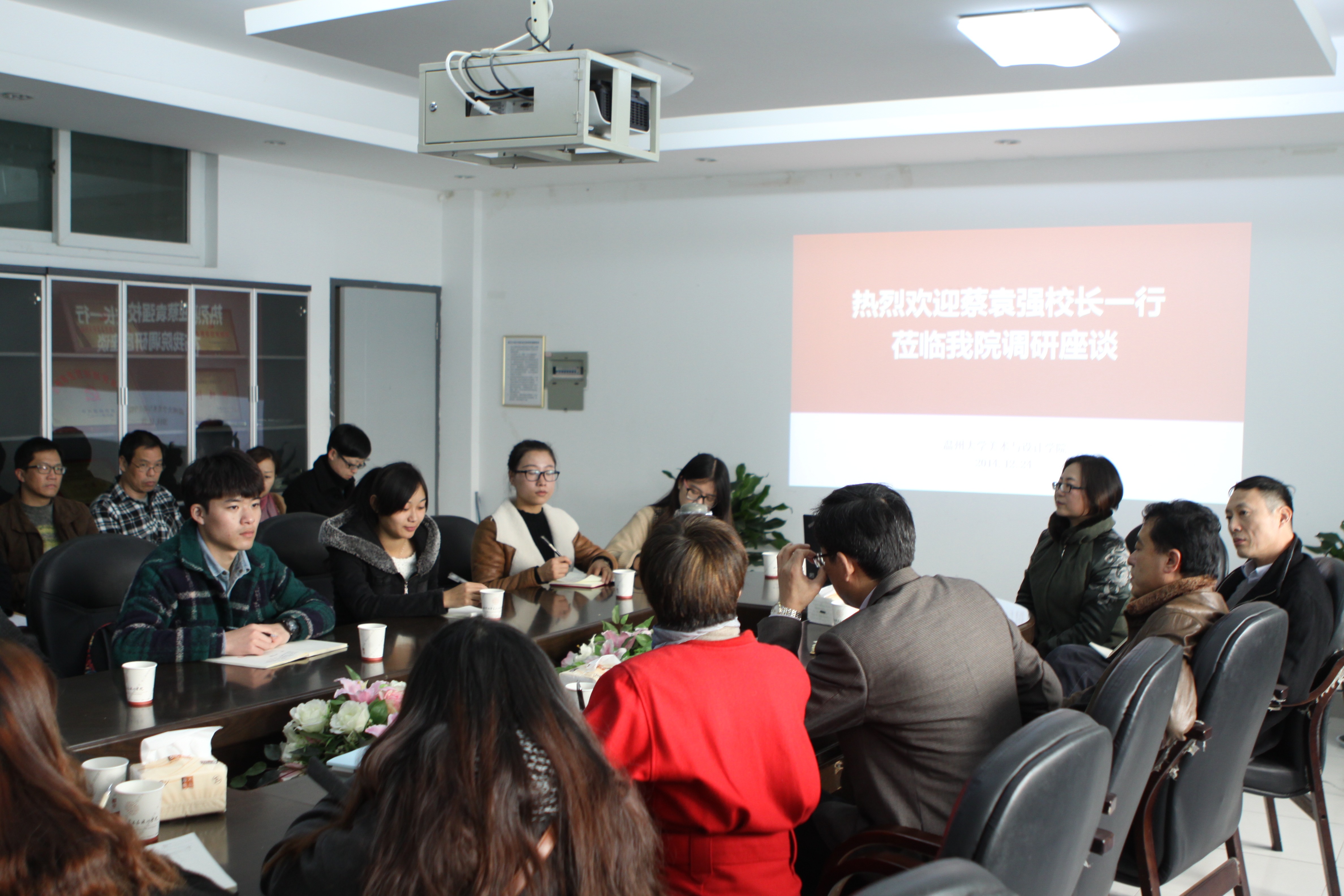 12月24日下午,蔡袁强校长一行莅临黑料网 调研座谈,座谈会在南校区美术楼2B216召开。出席会议的校领导还有牟德刚副书记、薛伟副校长,党校办、教务处、人事处、学生处、就业处、教师教学发展中心等相关职能部门负责人陪同调研,参加座谈的还有黑料网 班子成员、各科室负责人以及22位往届毕业生与在校生代表。座谈会主要围绕如何加强教风学风建设、提高人才培养质量与提升毕业生就业核心竞争力而展开。会议由教务处处长施晓秋主持。 座谈会在轻松和谐、亲切交流的氛围中持续进行。学生代表踊跃发言,在校生代表主要围绕如何更好的优化课程设置、丰富学习资源、改善仪器设备、浓厚学习氛围、拓展自习场所、加强实践教学、深化学习效果等问题提出中肯意见,正如一大二学生所说“希望老师在专业教学上,对我们要求再高一点,让我们学得更多一些,当我们毕业走上社会也不会被淘汰。”而毕业生代表则结合岗位历练后,对在校学习的留恋溢于言表,纷纷表示大学时光非常宝贵,希望老师在强化基础知识传授的同时,能结合学科专业发展出现的新知识、新技术、新方法的介绍与及时引入,对增强毕业生的就业竞争力将更有帮助。同时对美院学生日益浓厚的创业诉求,希望学校能在场地申请、创业教育等方面加以更多的鼓励与关怀。 在认真听取学生代表提出的各条意见建议后,蔡袁强校长对美院学子能关注学校发展、关心自我成长所提出的中肯意见与建议表示赞赏,正如他所评价一样,“美院学生的学风好,积极性高,创业氛围浓厚”。蔡袁强强调,学校学院各有关部门要结合学生的发展诉求,特别是多听取往届毕业生的反馈建议会更加有利于学校人才培养方案的完善。结合教学改革,他指出要进一步解放思想,及时认真加以探讨与整改,强调要在新生进校后要及时安排专业导论课加以引导与介绍,对稳定与巩固专业思想,浓厚学风,推进人才培养都非常有帮助。 通过此次围绕人才培养主题与教学中心任务深化的调研座谈,学校领导能来到学生当中,面对面诚恳提取学生的意见建议,对畅通交流渠道、增进师生感情、加强师德师风建设均有实际与深远的影响。
