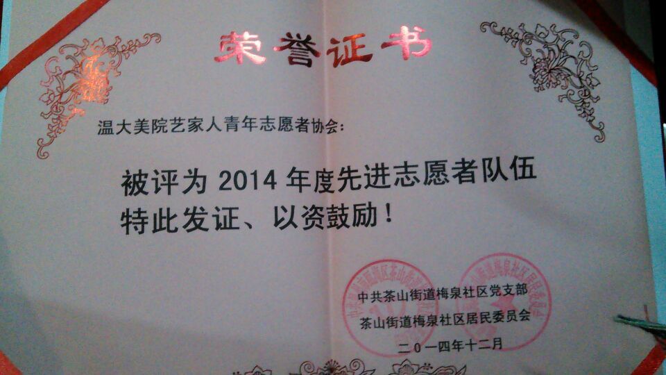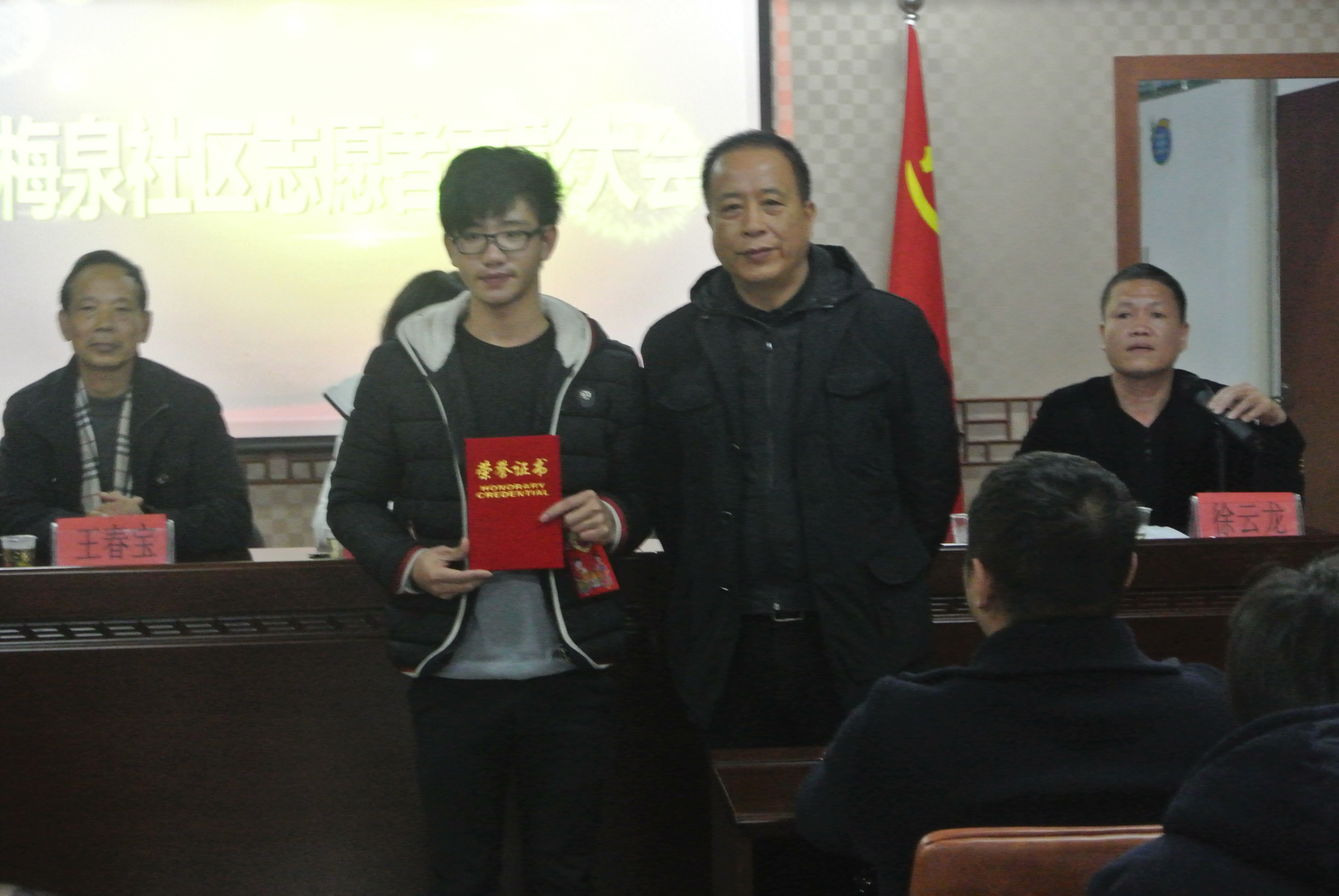 12月28日上午,梅泉社区居委会在道德讲堂开展了2014年梅泉社区志愿者表彰大会。此次大会由梅泉社区徐云龙委员主持,鲁建晓、王春宝、吴海燕等社区委员出席,黑料网 “艺家人”青年志愿者协会,温州医科大学,黑料网 城市学院,温州职业技术学院的志愿者参与此次表彰大会。