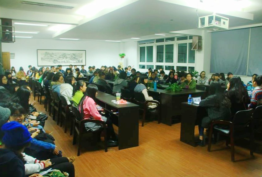 此次交流会设有两个环节。第一个环节是经验传授;四位学姐分别进行了作品展示和讲解,跟大家分享了备赛过程中的酸甜苦辣,可谓“台下十年功,台上一分钟”,从他们的艰苦经历中,同学们读懂了“一分耕耘一分收获”,成功的背后是多少汗水的积累。从他们的优秀作品中,同学们明白了在艺术领域“创新”的重要性,灵感源于生活,我们需要培养的是一双捕捉灵感的眼睛。第二个环节我问你答,在场同学们踊跃举手提问,谁也不想错过这次难得的机会。有比赛信息如何取得的疑问,有关于专业兴趣培养的困惑,有关于创意如何培养的难题……四位学姐对同学们的提问都作出了详细的回答,现场气氛一度高涨,问题不断,交流会一直持续到晚上十点。