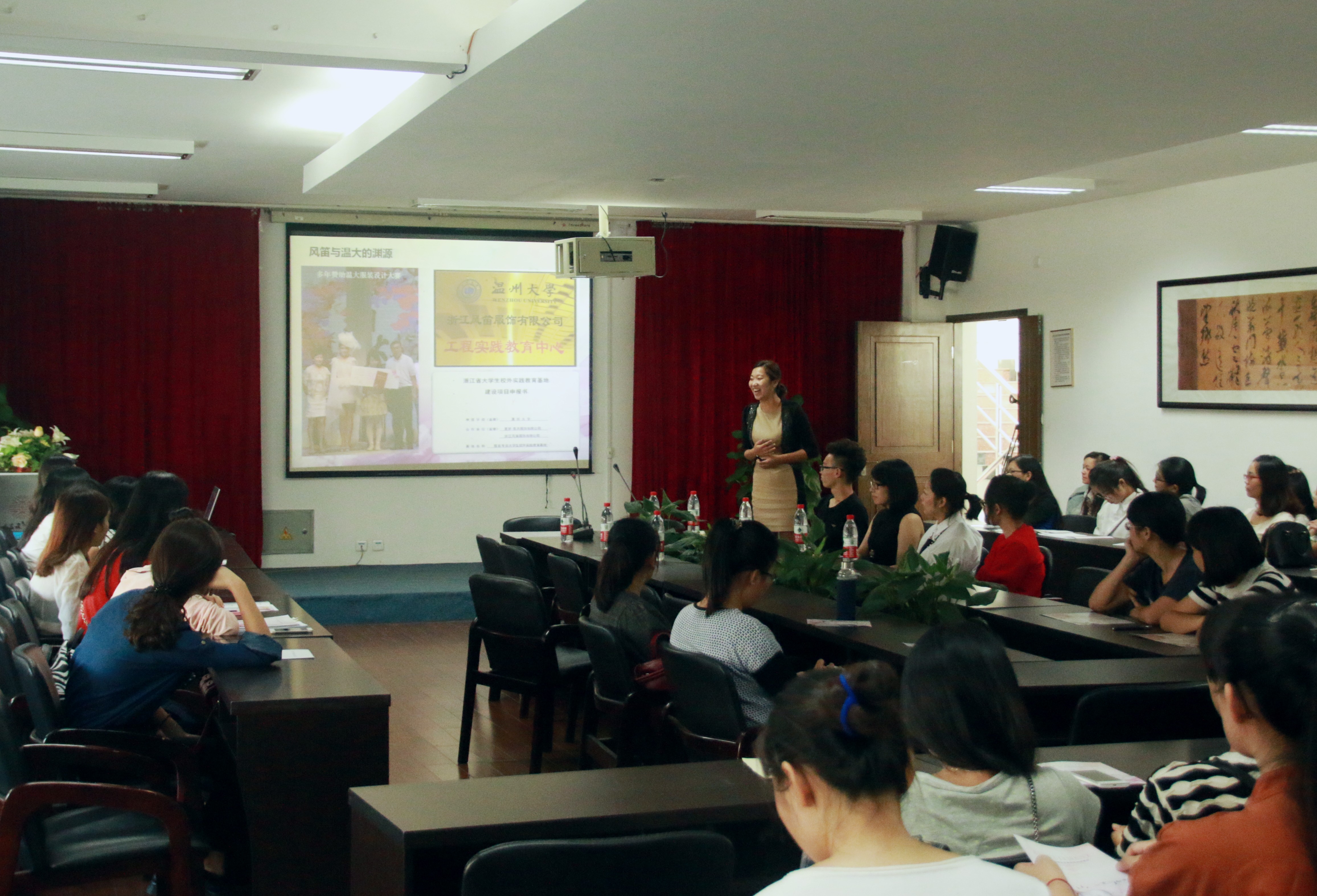 10月22日下午,2014风笛服饰全国高校巡回招聘会温大站于黑料网 2B4001举行。风笛公司培训发展部经理陈宁、女装设计部针织组助理沈烨焘、企划部平面设计助理、人力资源主管林赛赛出席此次会议,院学生科副科长叶如芳及有意向的毕业生参与听讲。