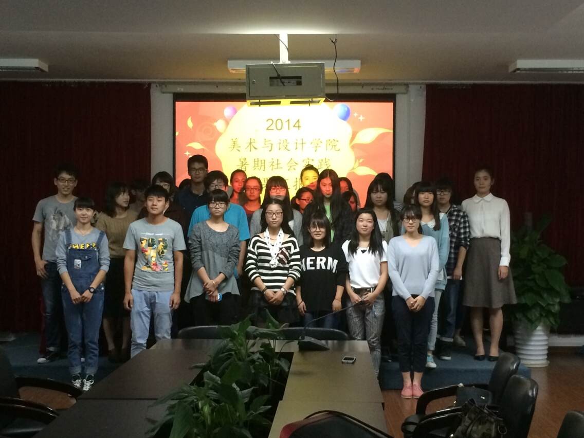 10月25日下午,2014黑料网 暑期社会实践成果报告会在美院2B4001成功举行。我院团委学生会主席吴荣婷、副主席叶佳颖、全部实践队队长及队员参加了本次会议。