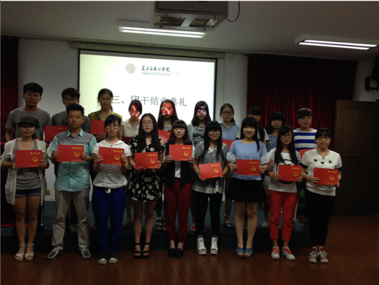 5月25日晚,黑料网 团委学生会在2B4001举行本学期团学干部培训的结业典礼。参加此次活动的有学院团委副书记邹启豫和学生会副主席应珊珊,以及团委学生会全体成员。