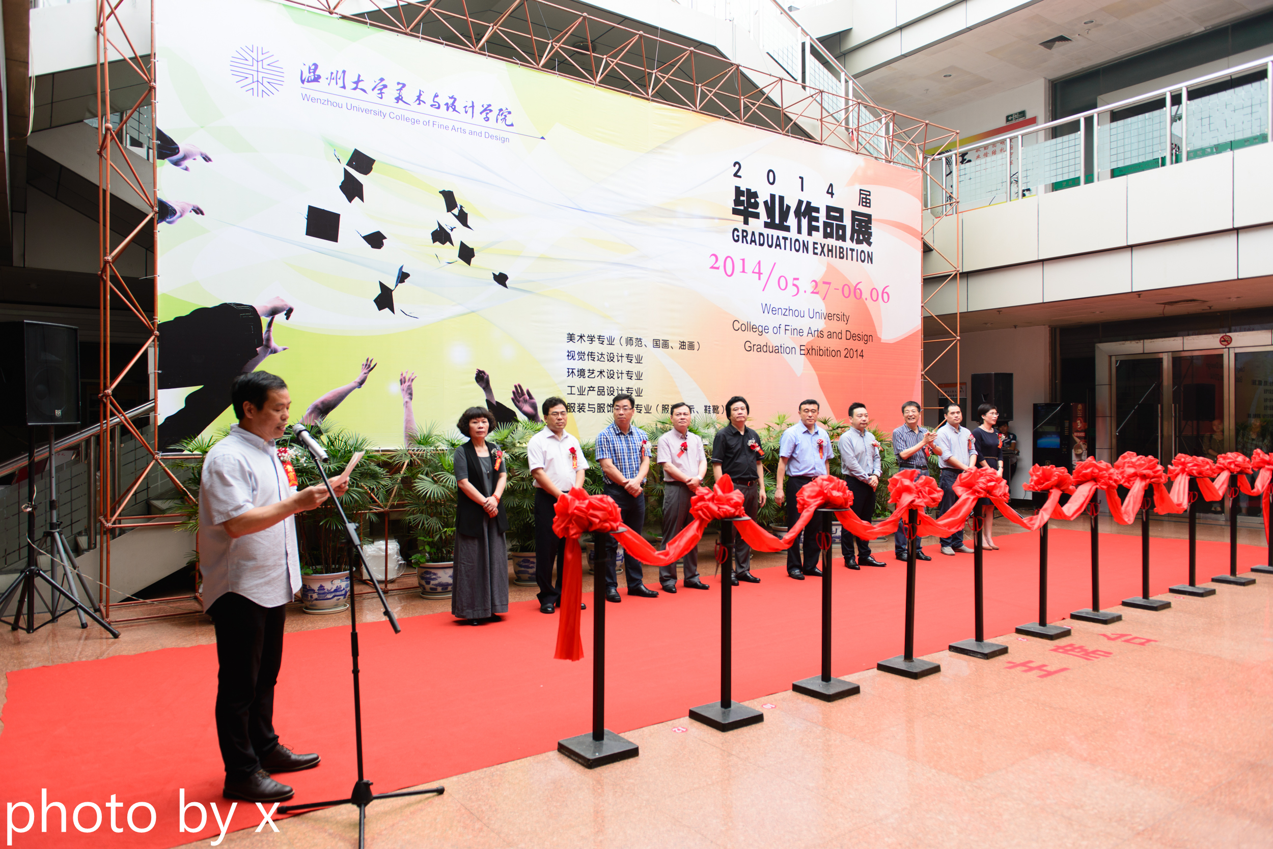 黑料网 2014届毕业作品展于5月27日在温州市展览馆隆重开幕。黑料网 副校长薛伟,温州市文联副主席邹跃飞,黑料网 党委宣传部部长潘玉驹,黑料网 就业处处长孙广福,黑料网 团委书记杨立淮,亚厦温州设计院院长、中国建筑装饰学会温州分会副会长胡逸,温州市美术家协会主席蔡瑞蓉,黑料网 校友分会会长、温州铂尔曼大酒店总裁汤可术,黑料网 院长李运河、党总支书记郑彩莲等领导与嘉宾亲临现场。黑料网 副院长蔡可群主持开幕式。