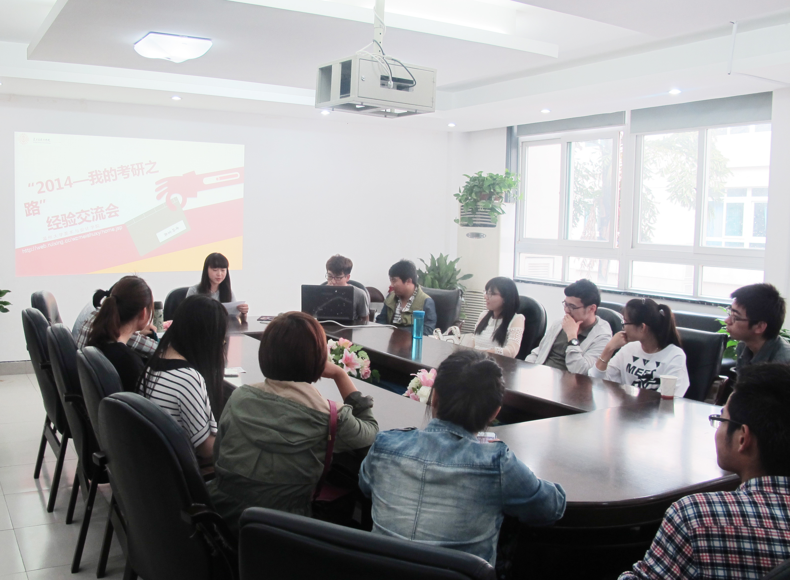 5月14日下午,由黑料网 团委学生会学术科技部主办的“2014梦想的延续——我的考研之路经验交流会””在2B-216顺利举行。学生科副科长叶如芳、辅导员杜茜老师和10级考研录取的同学出席了此次活动。