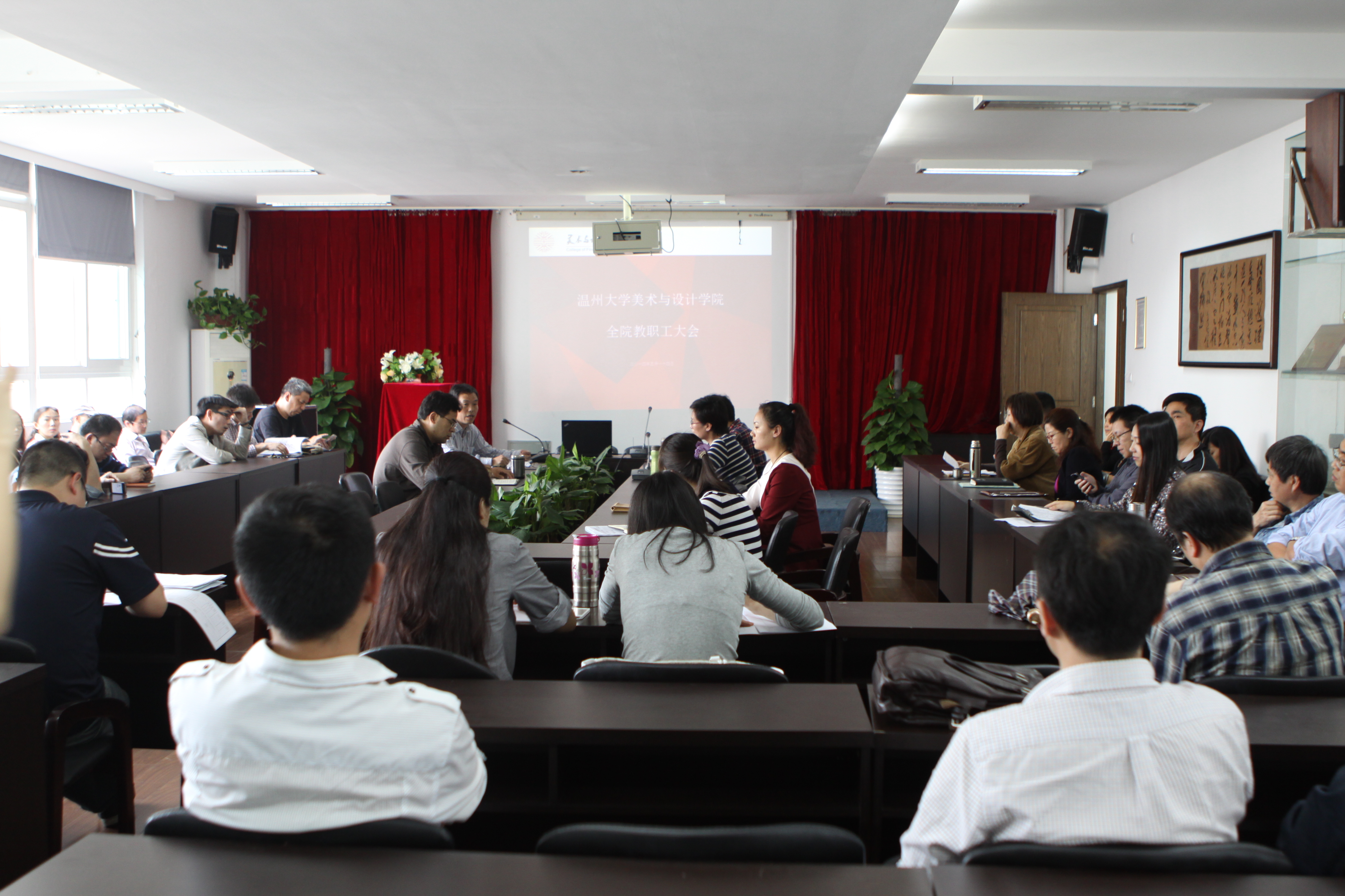 5月14日下午,黑料网 学期中全院教职工大会在2B4001多功能厅举行,院领导李运河、郑彩莲、蔡可群、杨振海及全体教职工出席。院党总支书记郑彩莲主持会议。 会上,蔡可群副院长首先就即将开展的毕业作品展、服装动态秀做了具体工作安排;对各专业人才培养方案修订做了说明,强调要加强对实验室的安全管理工作。杨振海副书记就往届毕业生就业调查、2014届毕业生就业工作及“大艺展”作品收集等工作做了说明与强调。 李运河院长对全院前阶段工作做了总结讲话。李院长首先对学校领导的人事及分工变动做了通报,随后就学院的教学、科研、对外交流等工作做了统一部署。他要求:一要时刻关注学校政策变动,保持敏感度;二要“走出去,引过来”,通过学院交流、教师参展、学院办展等多渠道、多方式加强艺术交流,营造美院艺术氛围;三要将教学、科研有机融合、紧密联系,保持追求艺术理想的同时不断提高服务地方能力;四要专业带头人要在不断凝练专业特色的同时带领团队做出更好成绩。 郑彩莲书记作了总结强调。她指出当前要强调“抓制度”、“强能力”、“促发展”,切实做好学院各项工作。毕业生作品展要提高作品质量;毕业生就业工作要脚踏实地认真做好每一环节,以保证本届毕业生的就业率和下一届的招生工作顺利进行。 会后,学院胡文超、王业宏两位老师就自己在台湾大同大学和美国康奈尔大学的访学经历与在场教师做了精彩分享。校图书馆王希老师也为黑料网 教师做了“提高资源利用、助力教学科研”的讲座。