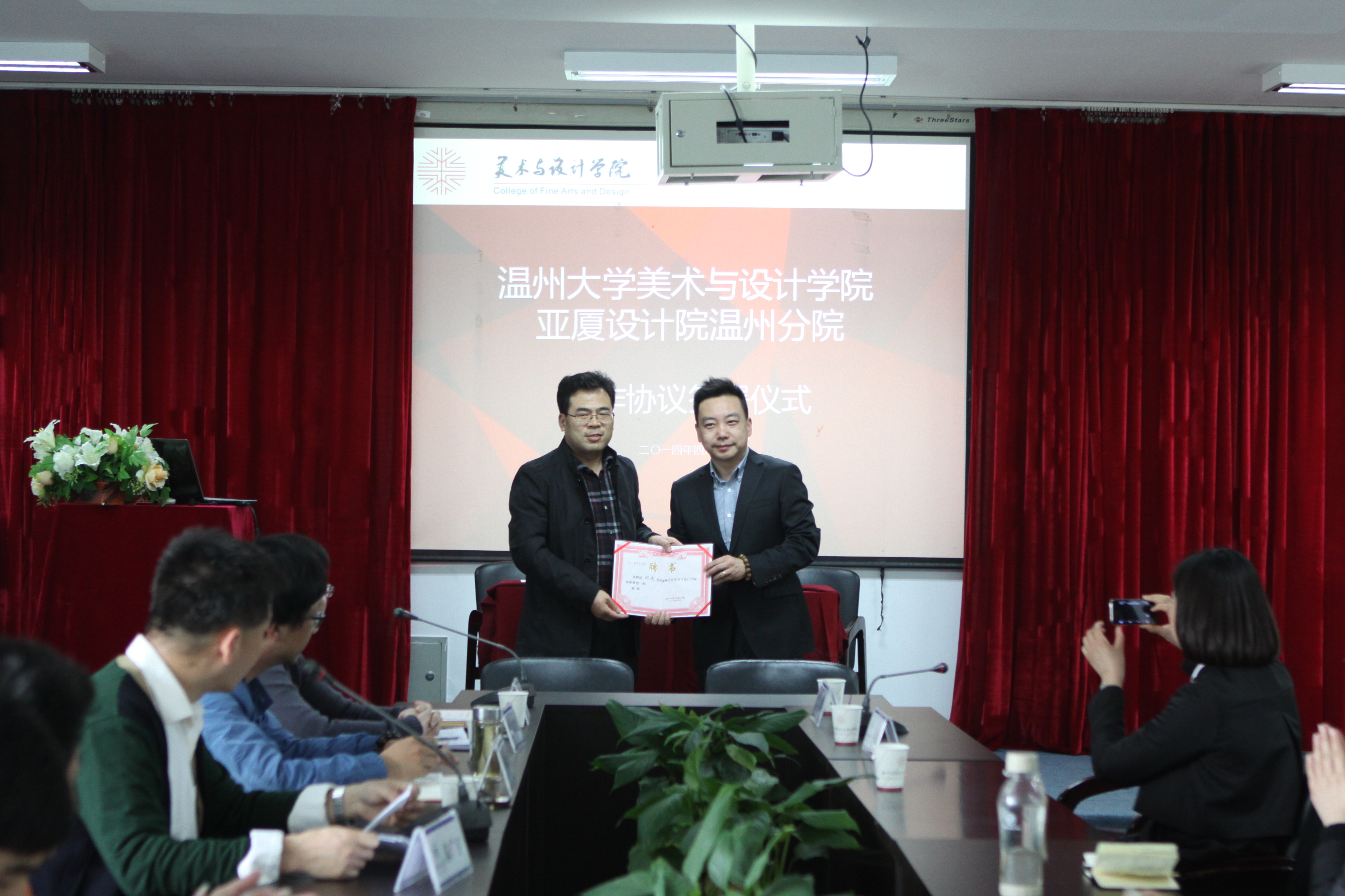 在双方代表的见证下,李运河院长代表本院与亚厦设计研究院温州分院胡逸院长签署了《黑料网 与亚厦设计研究院温州分院合作协议》。签约之后,李运河院长向胡逸院长颁发客座教授聘书。至此,黑料网 和亚厦设计院温州分院合作签字仪式取得圆满成功!