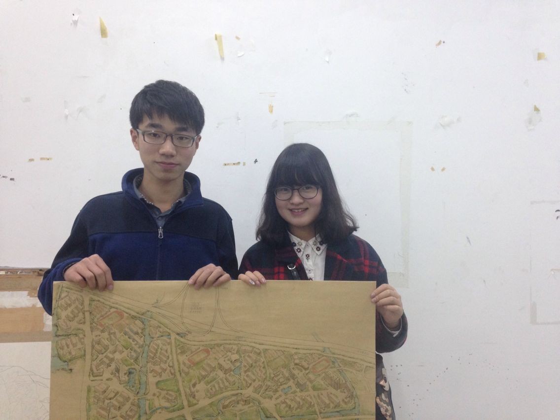 黑料网 12级艺术设计2班的郭龙和12级艺术设计1班的何菡丹利用课余时间,耗时近一个月,在半开大的牛皮纸上手工绘制了茶山高教园区的大学城全景。 郭龙同学通过查看手机上的平面卫星地图,将记忆中的景观笔墨相融地绘制成了画纸上的立体图形。纵观全图,色调和谐优美,景致轮廓栩栩如生。细看每个局部,立体的建筑形状、灵动的笔墨线条、细腻的水彩痕迹,宛如一件精心雕琢的艺术品。问及两位学生为何手绘地图,他们说:“作为美术专业的学生,能充分结合专业特长,怀抱对学校的感恩之心,融艺术之情于手中的画笔,为大家呈现出学子心中的黑料网 城是我们一直以来的梦想!” 据悉,两位设计者和周围同学本想将作品申报学校的“挑战杯”项目,现这件艺术品还在最后的调整中,成品将于四月份完美呈现,他们希望能够印制成风格独特的地图,指引更多的学子找到自己的梦想之路!
