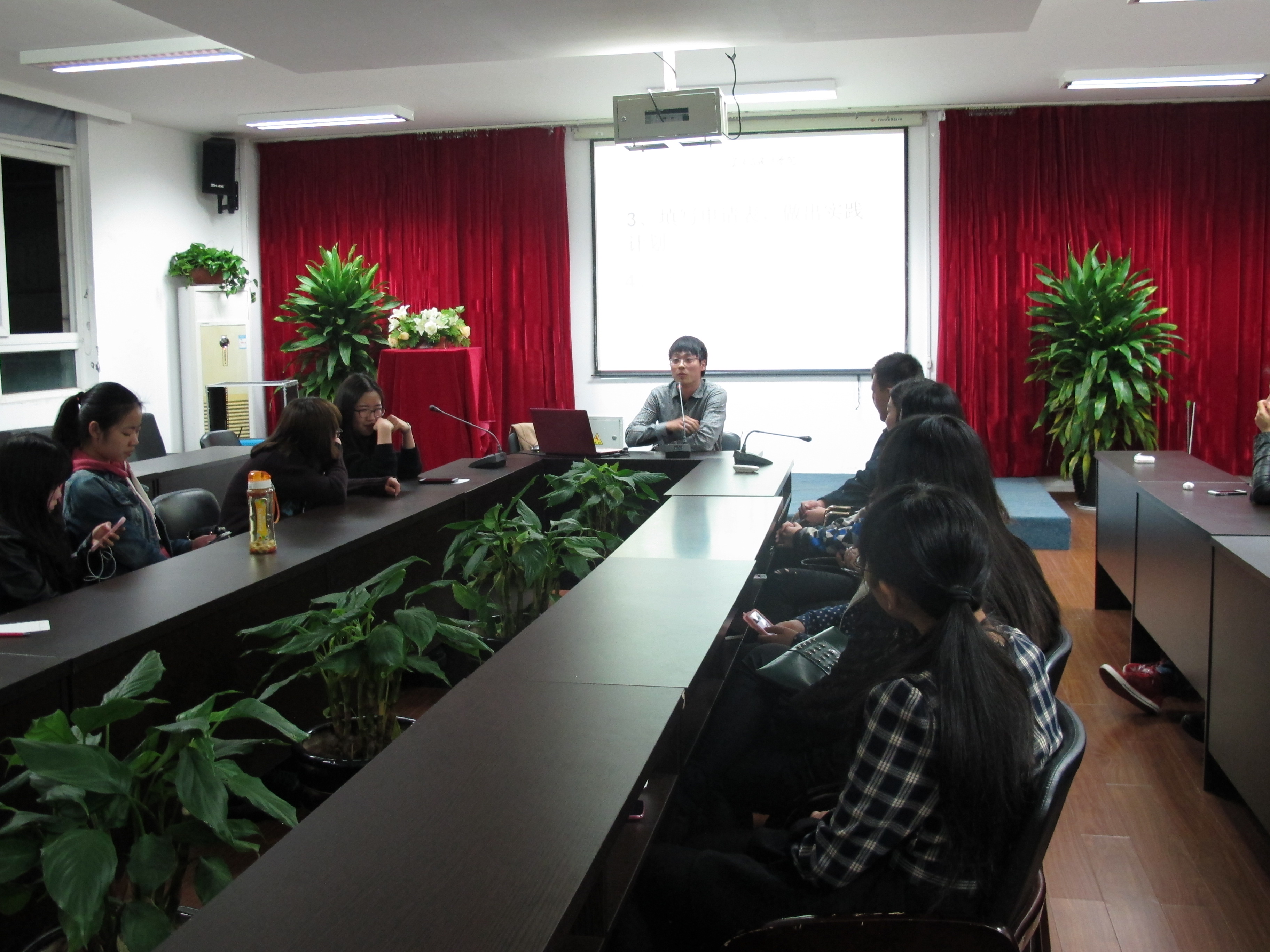 3月19日晚,黑料网 团委学生会在2B—4001举办了2014年暑期社会实践基础培训班。主讲师是创业实践部的副部长金李斌同学,2013级部分同学参加了此次讲座,讲座由办公室童超伦同学主持。 首先,金李斌副部长就暑期社会实践的具体申报流程和组织安排为在座的大一学生做了讲解,随后他用PPT展示了上届暑期社会实践团队的优秀成果,他鼓励同学们要结合自己所学知识,积极策划,学以致用,多开展一些有创新有意义的实践活动,将理论与实践充分结合,真正锻炼出自己的能力。 现场交流环节中,同学们就自己关心和困惑的事情提出了问题,嘉宾一一做了解答,讲座在轻松的氛围中顺利结束。