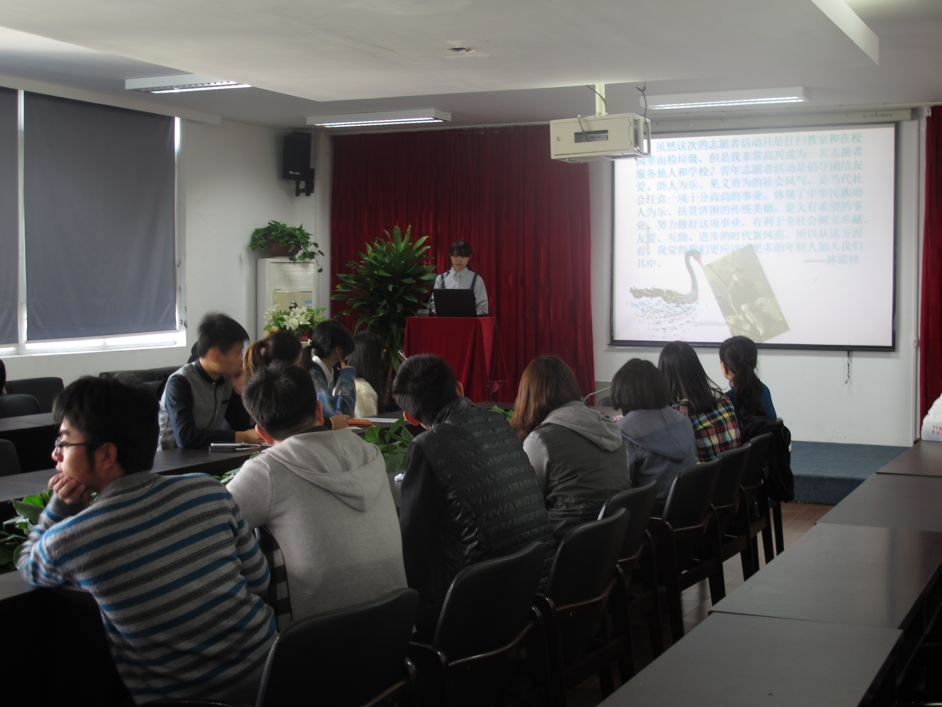 为传承和弘扬雷锋精神,展现当代大学生的文明风貌。3月22日下午,黑料网 “艺家人”青年志愿者协会在2B-4001开展了以雷锋月活动为主题的ppt展示评比,学院辅导员杜茜老师和青协副会长陈周红、冯瑜瑜担任评委参与了此次活动。 从3月15日,艺家人就开展了以“汇聚感动,传递温暖”为主题的雷锋月系列活动,参与活动的同学被分为8支小分队,每队有4-6名成员。同学们纷纷自发地以各种形式为社会文明贡献着自己的力量,有的队来到社区小学进行一对一的义务支教,有的队赶到茶山镇打扫地面上的垃圾,有的队走进教学楼清理墙面上的污迹,有的队来到住宿区整理胡乱摆放的自行车,有的队走向敬老院看望孤寡老人……分队成员将这些温暖的瞬间制作成PPT参与评比,与大家一同分享心得体会。 当PPT上出现小朋友画出的精美图案、老人嘴角露出笑容和学子为清洁的学习环境而感谢的画面时,志愿者说:“通过活动,让我们真切感受到了助人的快乐和喜悦,评选的结果已经不重要了,重要的是希望这些感动人心的照片通过传递后,能汇聚出社会的大爱,为和谐社会添砖加瓦!”