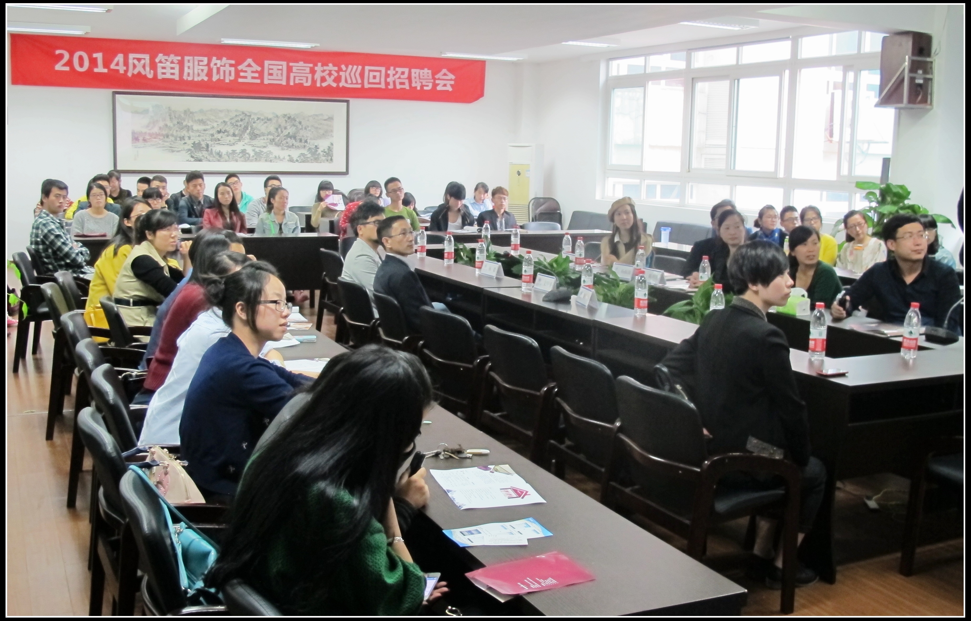 10月30日,风笛服饰全国高校巡回招聘会在黑料网 于2B4001进行首战宣讲。美院党总支副书记杨振海、“风笛”企业高层领导文甲平、企划部经理杨毅、培训部经理陈宁等相关工作人员出席的活动。10级服装系全体学生参加了本次招聘会。