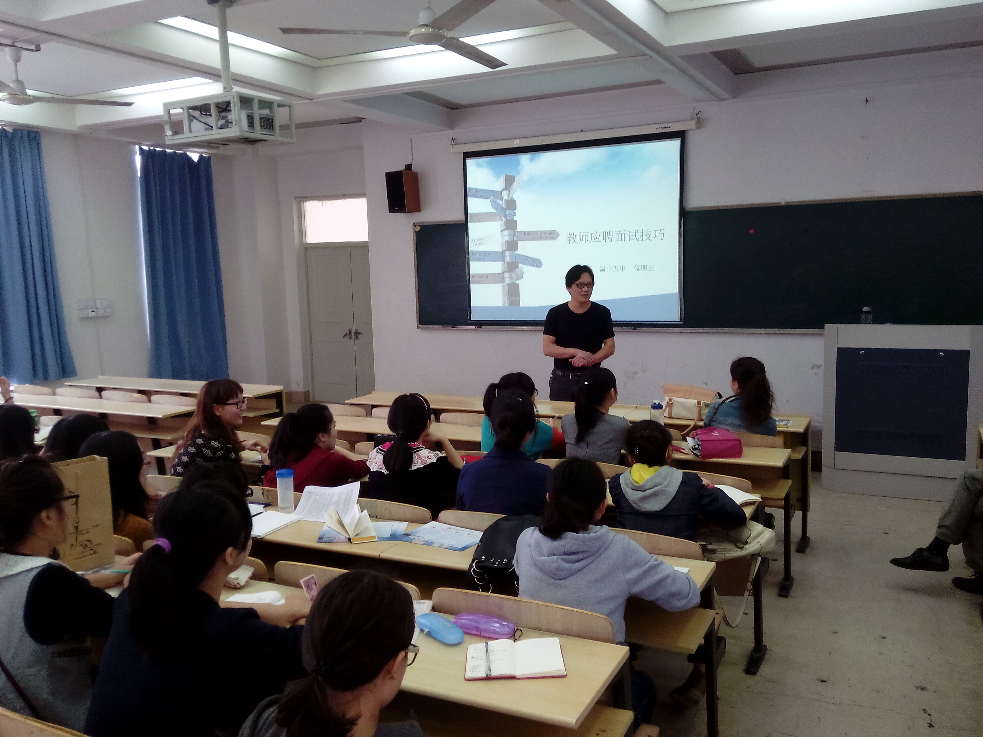 优秀的面试是成功的敲门砖,为培养在校美术师范生的应聘技巧,11月6日下午一点半,温州市十五中美术教师蓝鹏云老师和龙湾二小美术教师包新新老师在3A-201为同学们做了《美术教师应聘技巧座谈》专题讲座,主持此次讲座的是黑料网 研究生办公室主任胡建南老师。