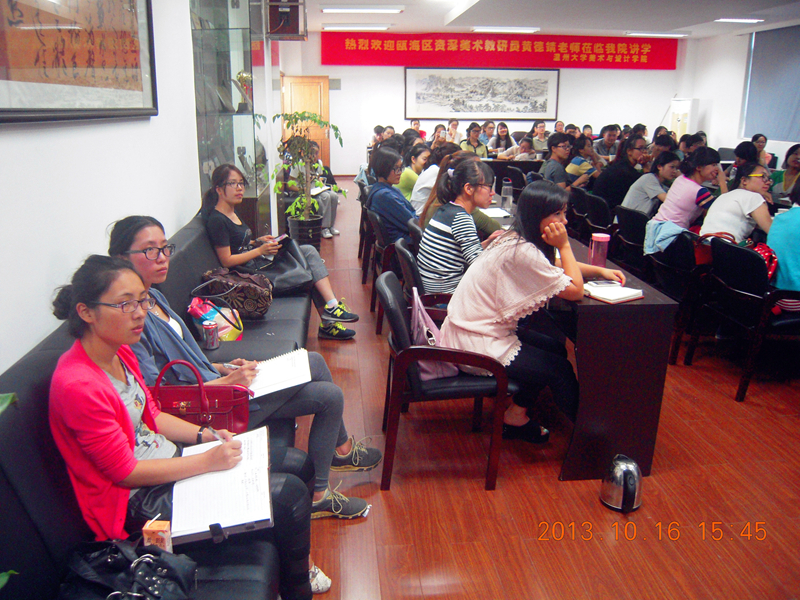 为提高在校美术师范专业学生的美术教育素养,黑料网 组织开展了为期三周的“美术教育专题讲座”。10月16日下午三点半,温州市瓯海区资源美术教研员黄德靖老师在2B4001为同学们做了《勤奋 成就未来---与未来的美术老师共勉》专题讲座,主持此次讲座的是黑料网 研究生办公室主任胡建南老师。 黄老师首先与同学们分享了他自身的工作经验。他讲到只有先天潜质加后天勤奋才能超越自我。从事美术教育工作21年,他总结于一句话:痛,并快乐着。他随后谈到一个合格的美术教师应该具备的基本素养主要有四点:丰富的教育理论知识和扎实的美术专业技能; 良好的师德修养和端正的工作态度; 要有不断学习、努力进取的动力。 对于入职以后如何定位与发展,他提出了“两要”:要根据自身条件,走个性化发展之路;要抓住关键的前5年。他最后谈到了当下学生最关心的关于美术教师招考问题并以鹿城、瓯海、龙湾历年美术新教师招考情况为例着重深入地讲解了美术教师招考的应对技巧。在讲座的最后,同学们积极地与黄老师进行交流。此次讲座让在校师范专业的同学明晰深刻地懂得了如何做好21世纪美术教师。讲座取得了圆满的成功。