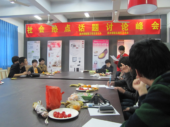 4月17日,由黑料网 学生第三党支部主办、08工业设计头脑风暴小组承办的“社会热点话题讨论峰会”在学院工业设计实训室火热开展。学生第三党支部全体成员、08工业设计头脑风暴小组成员和来自瓯江营销专业的部分同学围绕着“房价”、“创意”、“能源环保”等几个社会热点话题分别展开活跃讨论。