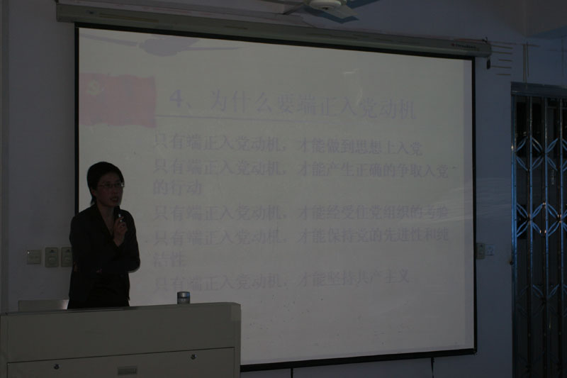 按照学院分党校培训计划,4月20日下午2点,在黑料网 2A306教室开展第十四期分党校培训第一讲。本次培训以“坚定理想信念,端正入党动机”为主题,由黑料网 党总支郑彩莲书记为党校学员做精彩讲座。 郑书记从互动环节入手,开始本次党课培训,现场要求学员说出自己的入党动机,并予以点评,纠正学员错误的入党动机,引导、鼓励学员树立正确入党动机,随后,郑书记正式开始本次培训,此次培训由三部分组成:一是端正入党动机,郑书记将其分成四个重点:什么是入党动机,入党动机不正确的表现,入党动机不正确的因素分析,为什么要端正入党动机。二是以实际行动争取入党。三是发挥党员的先锋模范作用。在轻松的气氛中,学员们受益匪浅。 通过郑彩莲书记的透彻讲解,参加培训的每一位学员对党有了更深刻的认识。课后,党课学员开展分小组讨论,共享培训心得,共同交流提高,每位学员都积极发表自己的想法,并承诺今后要树立正确的入党动机,以党员的标准严格要求自己。