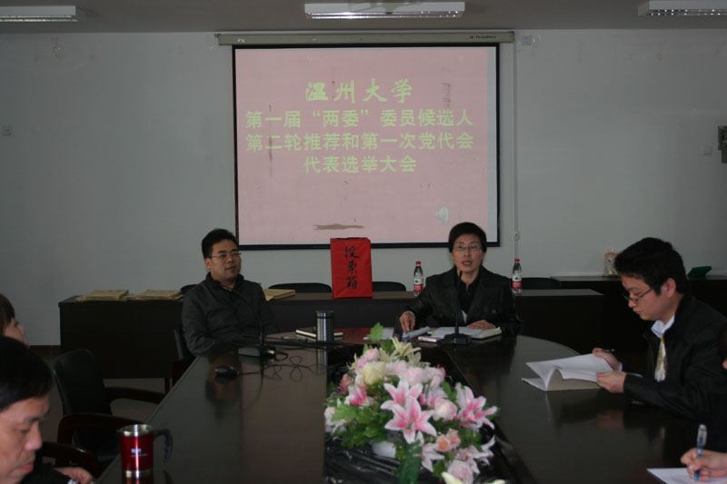 大会在庄严的国歌声中开始。根据大会议程,首先由党总支书记郑彩莲同志宣读了《中共黑料网 第一次代表大会代表选举办法》和校党委批复的8名出席党代会候选人名单,同时,大会以举手表决的方式一致通过了总监票人、监票人人选。