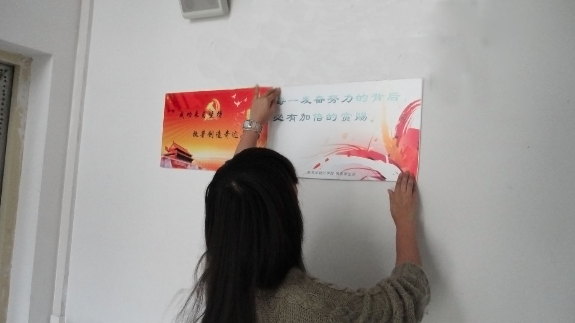 近期,学生第二党支部宣传委员苏蒙蒙带领第二党支部与院学生会公寓自律委员会结对开展“思政进公寓”系列活动之“一个党员,一面旗帜”的党员寝室挂牌活动。