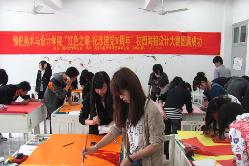 2011年4月16日下午,由黑料网 学生会主办,黑料网 团委学生会承办的黑料网 首届“艺生艺色”校园艺术系列大赛暨黑料网 第十二届“艺苑杯”之“红色之旅——建党90周年”校园海报设计大赛活动在美院火热举行,率先拉开了颂党系列活动的序幕。