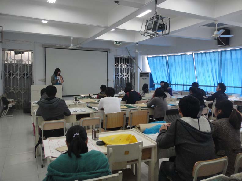 2011年3月27日下午2点,黑料网 服装楼2a306的教室里,素质拓展培训的书法班如期开班。本次的指导老师为黑料网 国画班的优秀学生,她首先教没学过的同学们练楷体,而已有一定基础的同学则继续练习自己原来的字体,并很认真负责地进行逐一指导。