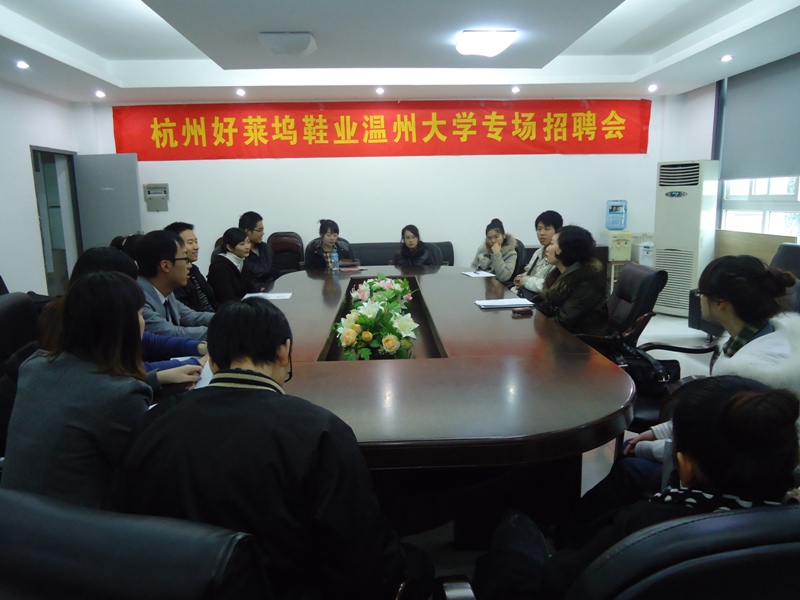 2010年11月30日下午1点半,黑料网 2B216会议室举办了杭州好莱坞鞋业黑料网 专场招聘会。杭州好莱坞鞋业有限公司总经理成雯亲自前来任面试官,黑料网 07级鞋靴设计班的同学们积极应聘。 成雯总经理一开始就询问在座的各位同学,包括为什么当初选择绘画、文化功底如何等等。谈话中,作为校友的她向同学们讲起她过去的大学时光,表示大学生多学点东西总是好的。为了能了解在座的每位同学,成雯总经理让同学们轮流进行自我介绍,说明近几年的工作目标。期间,她向同学们了解起专业方面的能力。 经过一轮简单介绍,6位同学脱颖而出,按地域被平均分成3组,每两人一组依次单独面谈。成经理考察了同学们的专业能力水平,吃苦耐劳的品质及设计方向等多方面。希望公司能在此次招聘会中相中千里马,培养出属于自己品牌的中国化的设计师,打造世界级品牌,并真诚鼓励同学们努力,实现自己的目标。 在这接近两个小时的招聘会中,同学们畅所欲言,递交精心准备的个人简历,希望能被好莱坞公司所青睐,让自己学有所用,一展抱负。最终的应聘结果不日即将揭晓,敬请期待喜讯。