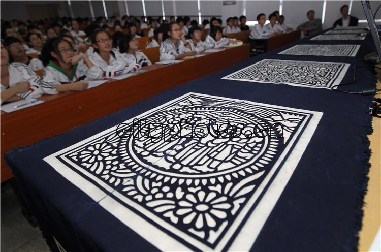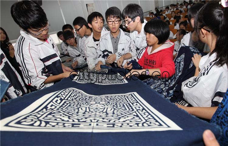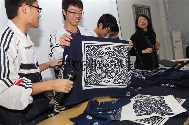 2010年11月14日,“传承与创新——情系温州蓝夹缬”展览及讲座在温州市第十五中学举办,黑料网 讲师王业宏博士为学生带来了“传承与创新——情系温州蓝夹缬”的讲座,讲述了温州蓝夹缬艺术的源流、现状、工艺流程、艺术特征及创新设计。并通过一些实物展示,与观众互动、交流,讨论对蓝夹缬的认识和设计开发的思路,引发广泛兴趣。 蓝夹缬系浙南地区现存的一种单色夹缬工艺被视为古代技术的活化石,现已成为国家级非物质文化遗产加以保护和传承。
