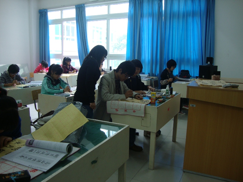 2010年11月21日上午9点在黑料网 2B2001教室和2B4001教室内,黑料网 书法培训素拓班正在开始本学期的最后一堂课。 该培训班是黑料网 团委素拓中心开设在黑料网 的一个书法培训班,由黑料网 08美术国画班的陈龙龙同学担任该班指导老师。该班于本学期第六周开课,累计上课次数6次,上课时间固定在每周周日上午9点至11点半在黑料网 2B2001和2B4001,该班成员来自学校各个学院,其中正式学员40余人,旁听生10多人。 根据学生上交的心得来看,陈老师很尽职尽责,而且循循善诱,在学生中口碑很好。陈老师不光光有着老师的身份,还是一位学长,更贴近学生生活,具有亲和力,有利于彼此间的沟通交流,对学生们书法水平的提高有很大帮助。在谈话中了解到该班在上课期间曾有过一次表演活动,老师当堂表演4分钟的书法,技艺精湛,赢得了学生们的一致好评。课堂上,同学们都认真在练习毛笔字,学习氛围浓厚,老师则在一旁指导,给出了很多宝贵的建议。 据悉,在此次课堂结束之后还将开展一次书法表演,这会是一次很好的书法交流的平台。大家尽请期待!