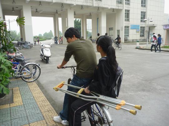 2010年10月14日早上6点30分,黑料网 第三党支部的预备党员吴志斌已经早早地来到A区一号楼楼下,等待接送因脚受伤的10届新生仇芝露同学上下课,这是他第二次接送芝露同学了,而第三党支部的“爱心接力”活动也已经有半个多月了。